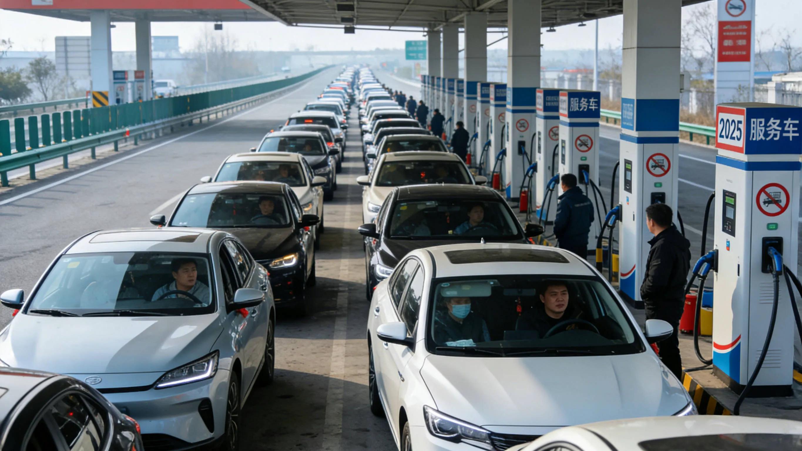 于这场返程大考里头,最为焦虑的当属新能源车主,在京哈高速滦县服务区那儿,国家电网的充电桩前,排队的车辆超出了20辆,工作人员手持大喇叭呼喊着:“预估等待时间4小时以上,建议下高速寻觅快充。”。