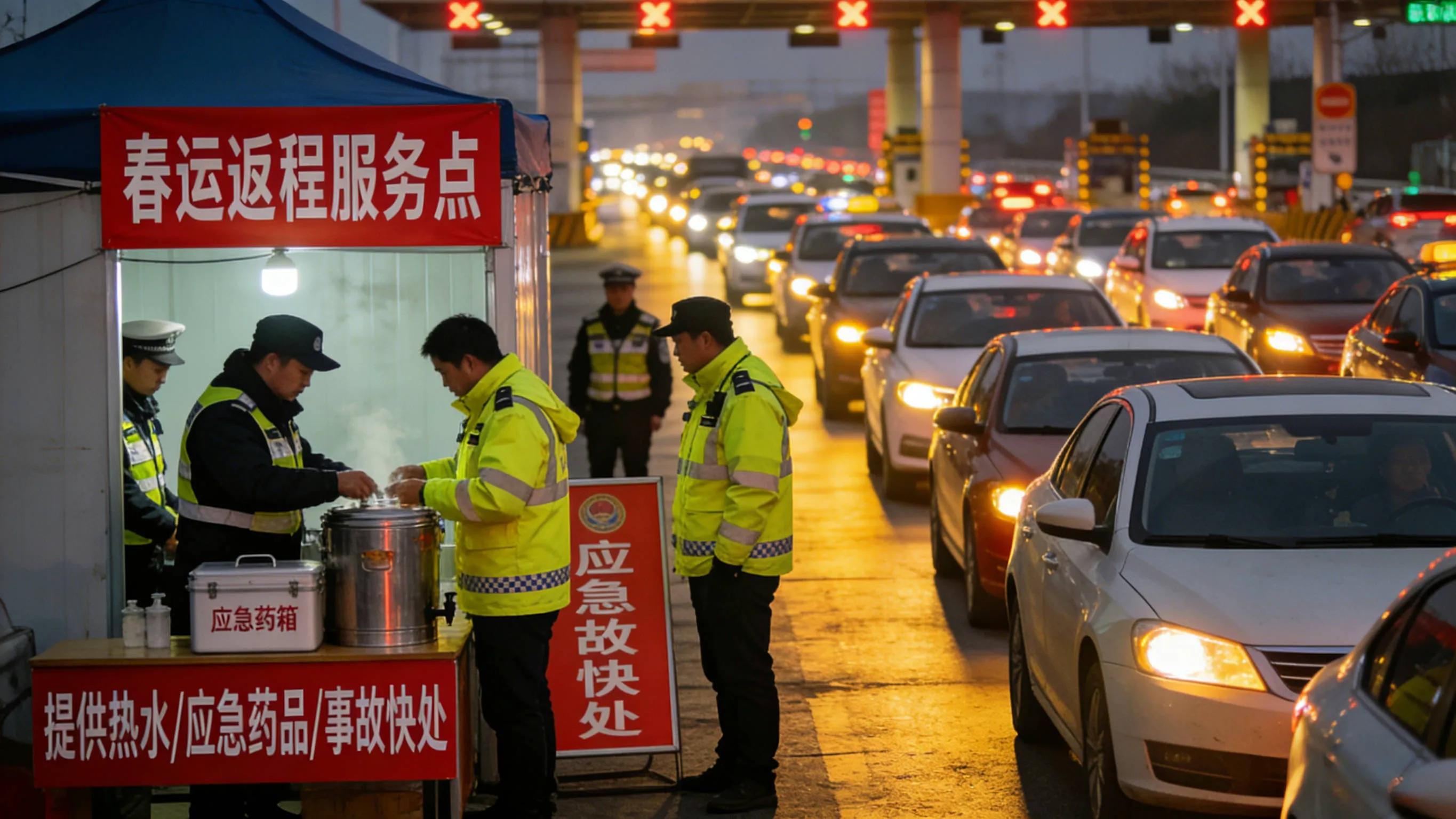 即便路上拥堵得令人心生烦闷,然而却总有一些人能给人带来安心之感。于各大主要收费站以及事故多发路段,交警与路政人员全体上岗,就连机关民警也都上路予以支援。他们筹备了热水,准备了方便面,配备了急救包,还有简易的车辆维修工具。