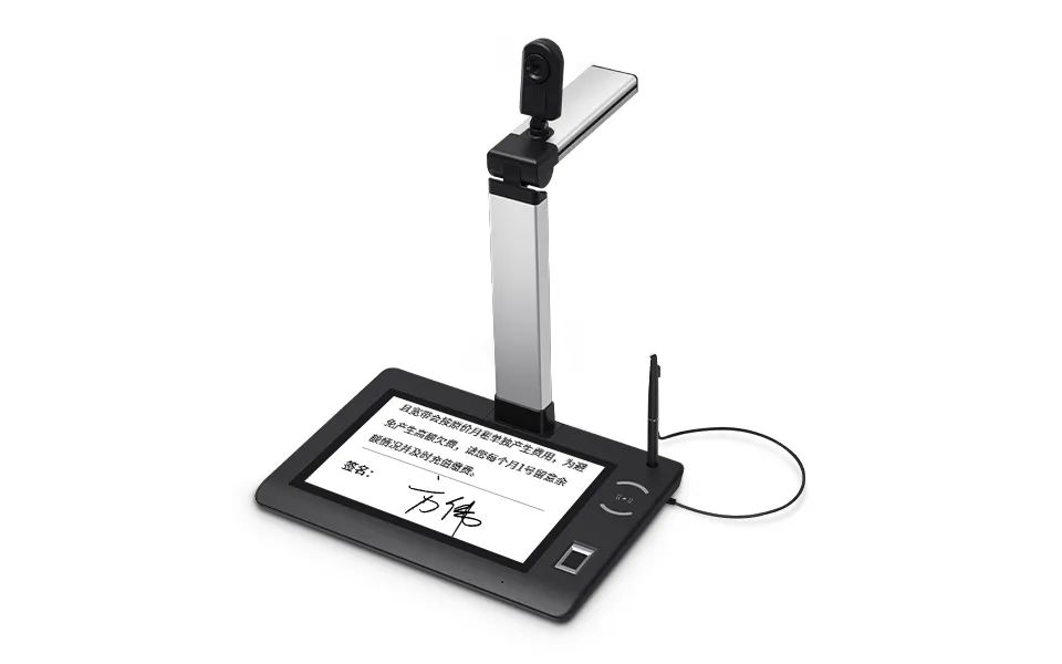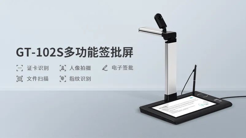 从技术手段方面令难题得以解决的绘王科技所推出的 GT - 102S 多功能签批屏,采用了配备了专为扫描身份证、驾驶证等证件的俯拍摄像头以及能够采集办理业务人员现场人脸图像的前置 500 万像素摄像头的双摄像头设计。