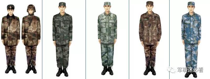 07式作训服依据使用环境以及军种需求,衍生出了好些种迷彩配色,林地迷彩配色是灰、绿、棕褐、黑这种情况,被陆军大量使用,还是陆军夏季用迷彩,丛林迷彩是黄、绿、褐、黑相间的样子,主要被火箭军所使用,这两种迷彩在军训里最为常见。