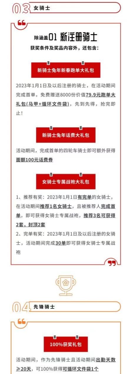 从1月1日起至30日,于这个时间段内新注册的社会兼职骑士,只要其活跃天数符合要求,并且配送单量也达到规定,那就能够参与平台所举办的抽奖活动。这样一种直接的激励方式,为春节期间的人员补充给予了有力保障。