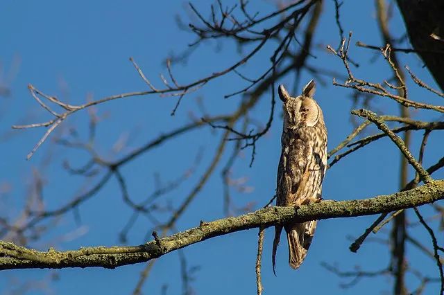 这种翼展超过1.7米的大鸟,曾是北海道阿伊努族人心中的“乡村守护神” ,然而2005年的一项调查表明,因为成熟林木被大量砍伐,致使适合它们筑巢的树洞减少了60% ,当地环保组织自2010年起开始搭建人工巢箱,到2019年记录到23对长尾林鸮借助这些“保障房”成功繁殖。