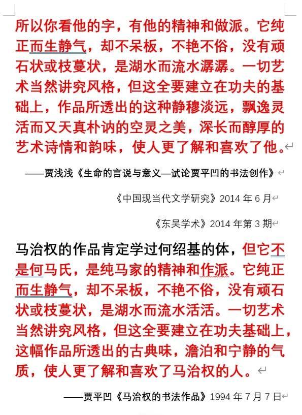 åä¸»âææ çæ£®æâæ¾åå¸ç§°ï¼è´¾æµ æµ äº2014å¹´6æå表è¿ç¯è®ºæé¨åå 容ï¼ä¸å ¶ç¶è´¾å¹³å¹çã马治æç书æ³ä½åã䏿é«åº¦ç¸ä¼¼ã贾平å¹å表äº1994å¹´7æãåç»äº1998年第5æã书ç»èºæ¯ãçè¿ç¯å¯¹å¦ä¸ä½ä¹¦æ³å®¶é©¬æ²»æä½åçè¯è¿°ï¼20å¹´åï¼é¨åè¯å¥è¢«å¥³å¿âå¼ å ææ´âç¨å¨äºèªå·±èº«ä¸ã