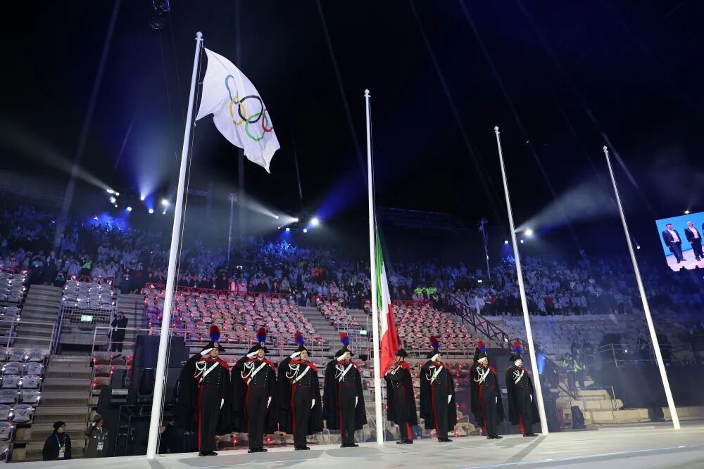 闭幕式中,进行的会旗交接仪式,意味着冬奥会切实步入下一届主办周期,国际奥委会主席考文垂把奥林匹克会旗给予下一届冬奥会主办城市代表,也就是米兰 - 科尔蒂纳丹佩佐冬奥组委主席乔瓦尼·马拉戈,交接进程庄重却简约,且伴随着奥林匹克会歌奏响。